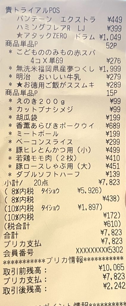 | 食費・日用品 | 7,823円 | お米とか洗剤とか | 食費 日用品 |