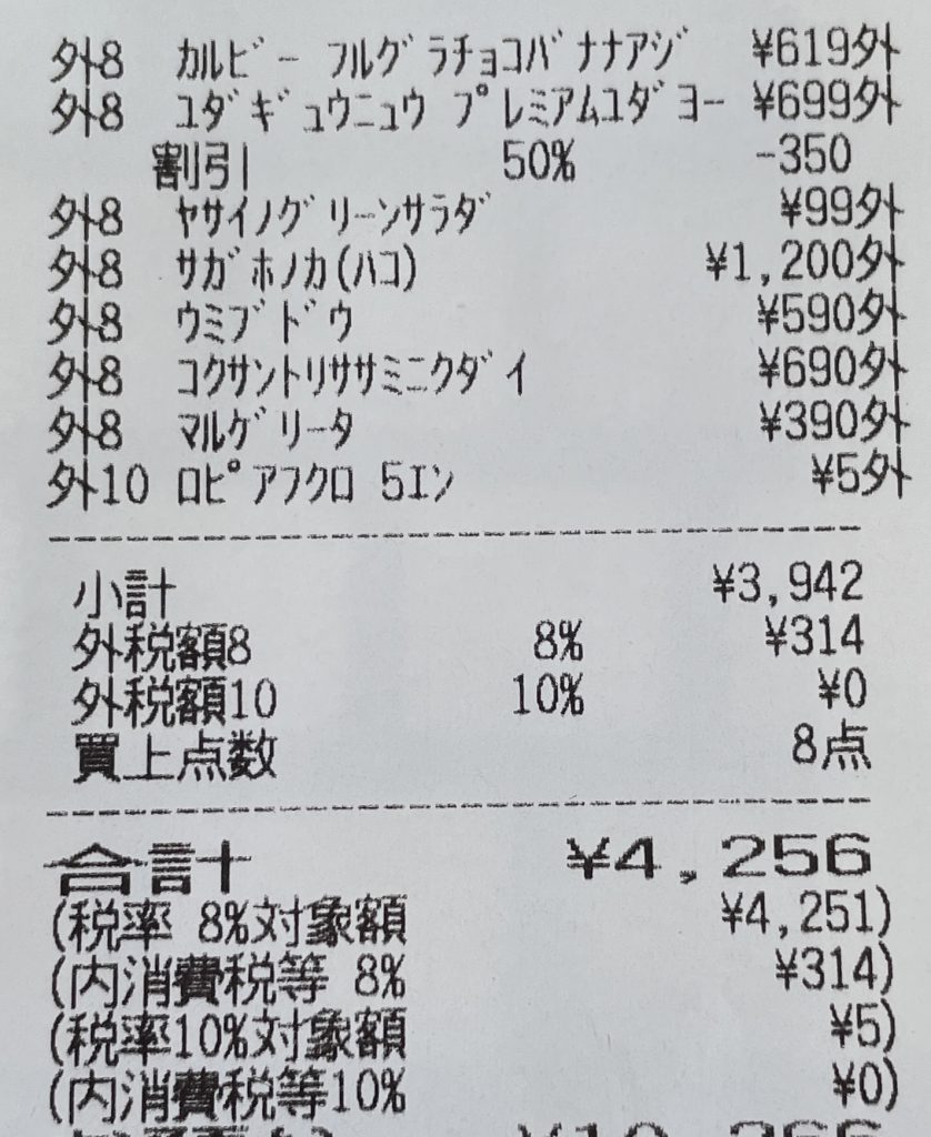 所感:お給料日なので少し調子に乗った感は否めません。気を引き締めて参ります。が、食品なんかはしばらく分買えたので、この先数日の食費はかからない予定!頑張る。