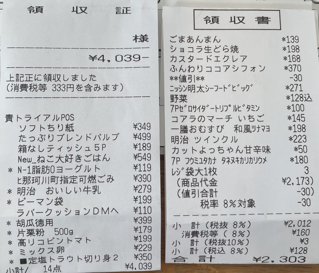 | 紙・ゴミ袋・猫ごはん | 4,039円(食費1,953円 / 雑費2,086円) | これはしょうがない | 雑費・食費 |