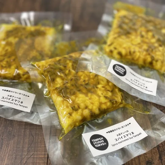 TENPE STUDIO TOKYOさんというところなのですけど、いろいろ付け込んであるおつまみテンペみたいなのも取り扱っていて、今回はおつまみ系と普通のを買ってみました。